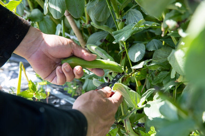 そら豆が、今ピークを向かえています。パキッとさやを割ると、白い綿毛に包まれた、ふっくらとした可愛らしい豆がひょっこり顔をのぞかせます。