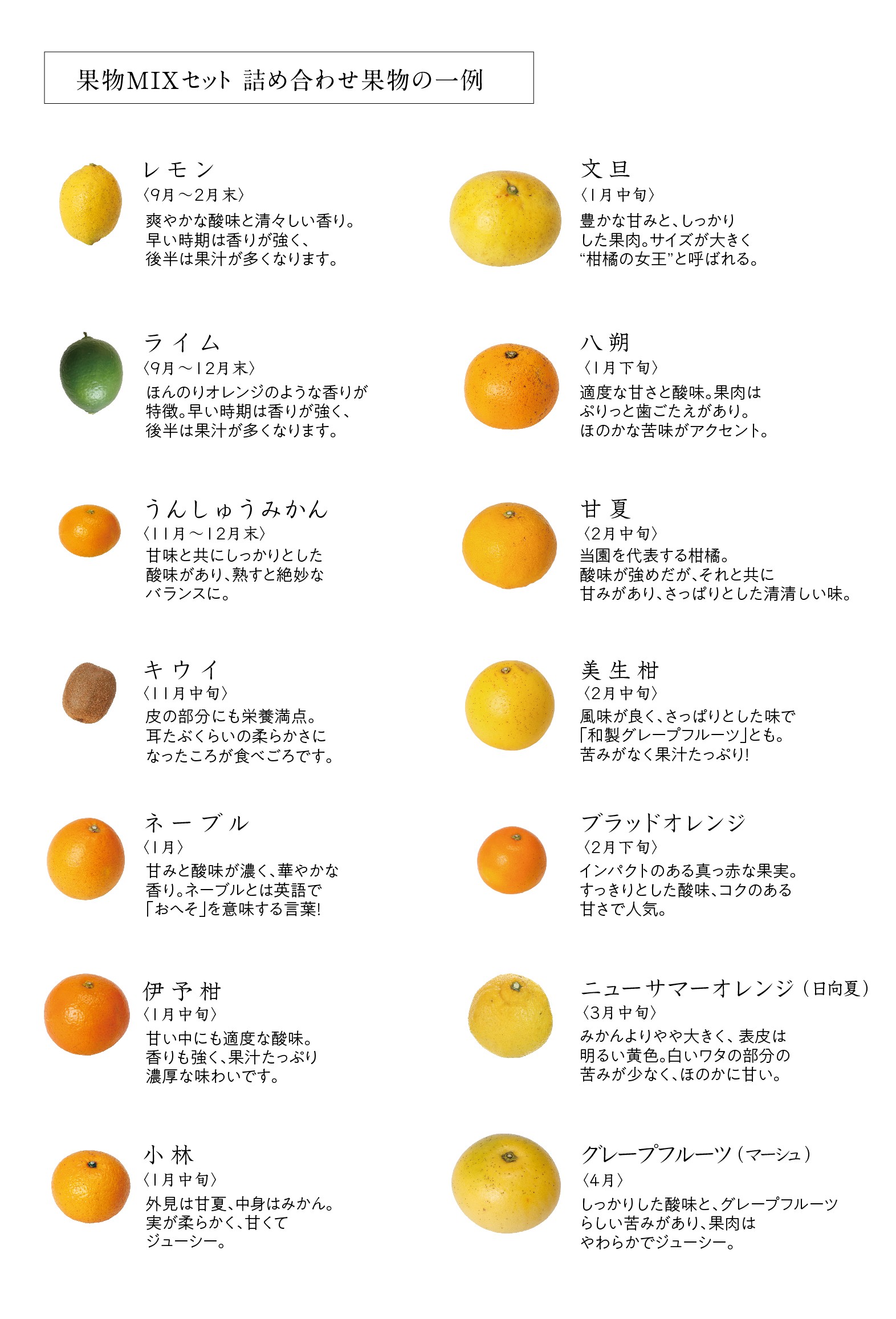 表示している以外にもバレンシアオレンジなど、単品でのご案内のない果物もセットに入ることがあります。